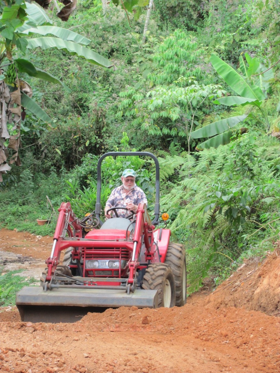 Between the house and the plant nursery is a steel building that contains a workshop zone and a garage now occupied by a tractor. This is an inspiring space suitable for all forms of creativity. The light and breeze here offer the perfect environment for making things or even just meditating. Below the workshop is a large storage lot for building materials where big trucks can off-load and turn around. This is a rare and very valuable feature.